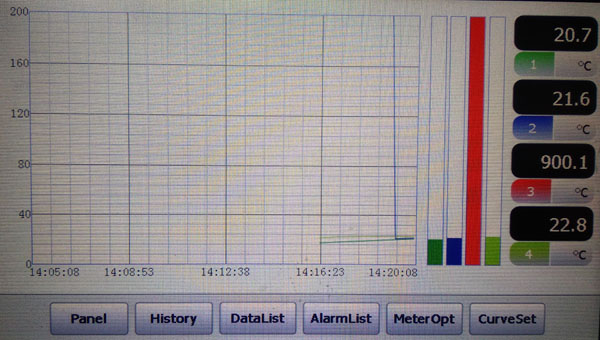 SV:溫度設(shè)定值,一、二、三通道不控制溫度,輸入該值可在左側(cè)坐標(biāo)圖中參考實(shí)時(shí)運(yùn)行曲線;