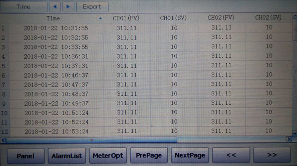 Export:數(shù)據(jù)導(dǎo)出,將U盤插入操作面板的USB插口,然后點(diǎn)擊該按鍵,顯示提示:“please confitm whether to export,if yes,please set time span ,the exported file named Hisdata.csv”確認(rèn)后,提示“Export success”,如果沒有插入U(xiǎn)盤或U盤損壞,提示“Export fail”